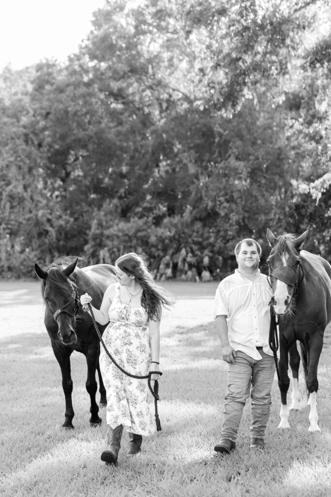 In a few conversations prior to their engagement session, Lance had hinted that horses might be part of the shoot, but I wasn’t sure it would really happen… until he shared that the horses were on their way. My heart leapt! What could be more perfect for these two? Horses have brought both Lance and Jenna deep peace through life’s challenges, including their own ongoing health journeys. The thought of having these beautiful and gentle companions in their photos, made their engagement session uniquely and authentically theirs.