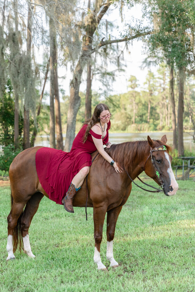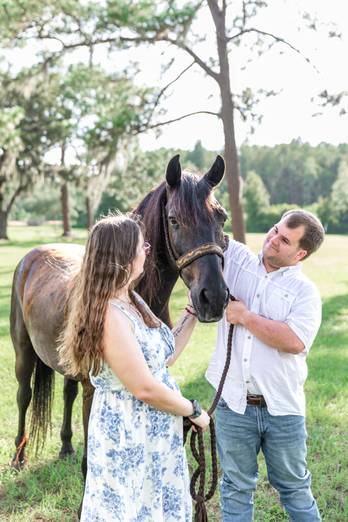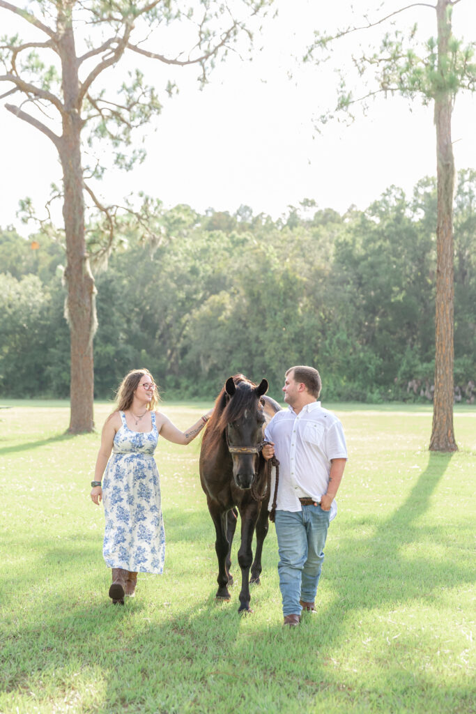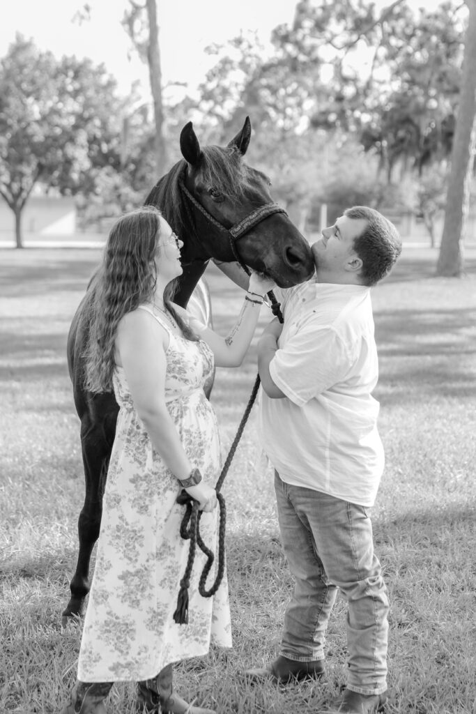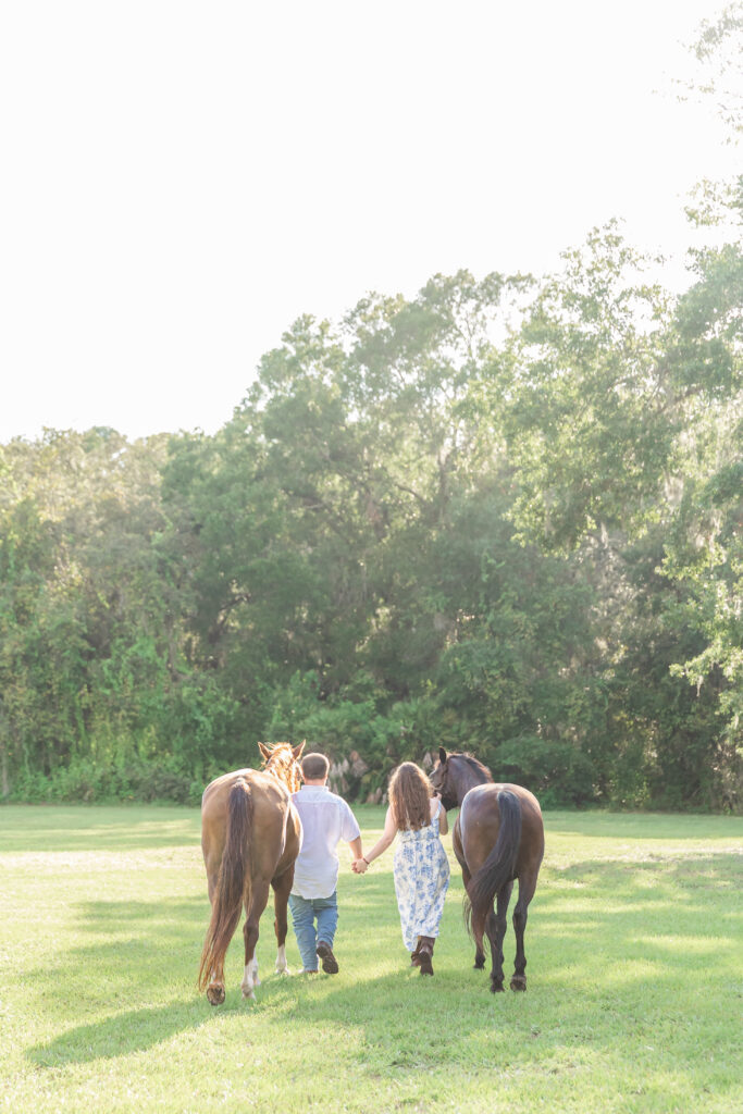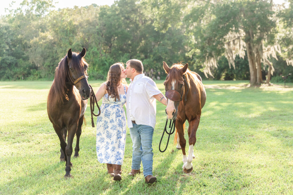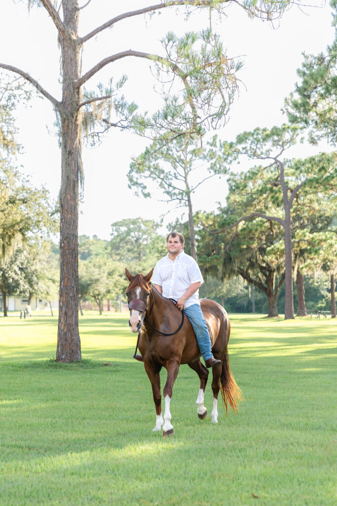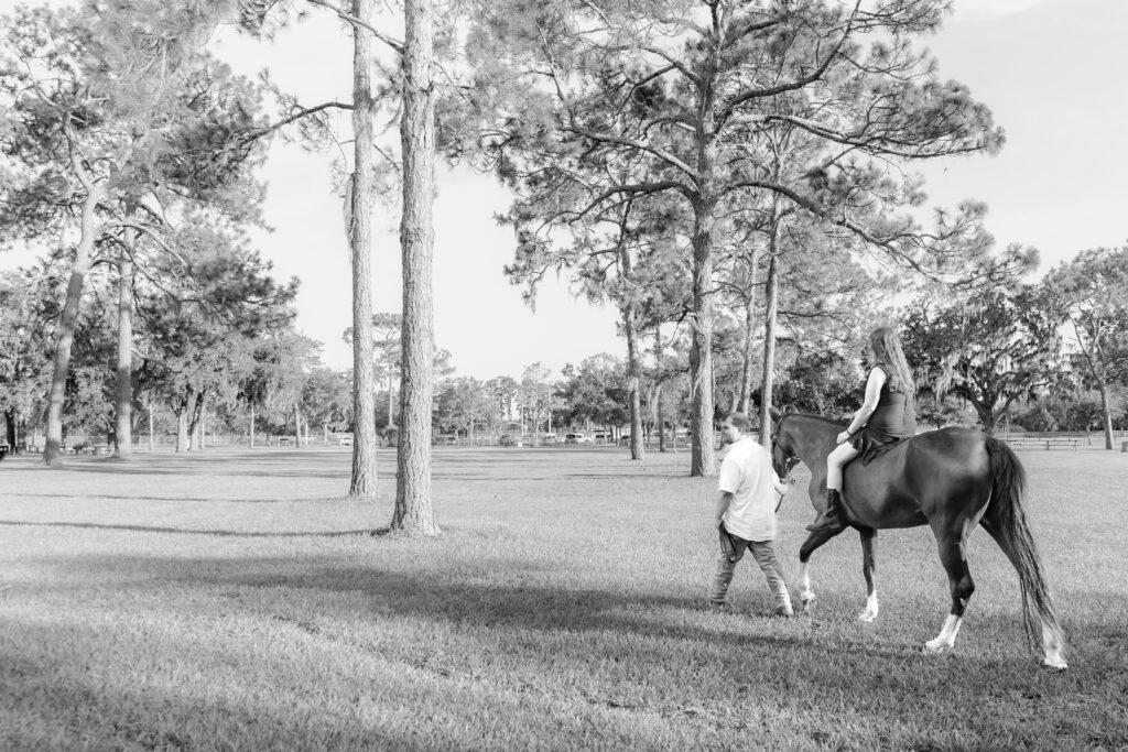 When the horses arrived, we eased into the session, first, with a relaxed walk around the park. I watched as Lance and Jenna stroked the horses’ necks, and it was so cute to hear them laughing together. Their calm was contagious. And then… Lance swung up onto his horse first, completely at ease, and took off riding the horse around. The horse and Lance had such a mutual trust for each other. Then, shortly after… Jenna followed. She was just as graceful and natural. The trust between the two of them and their animals was beautiful to witness.