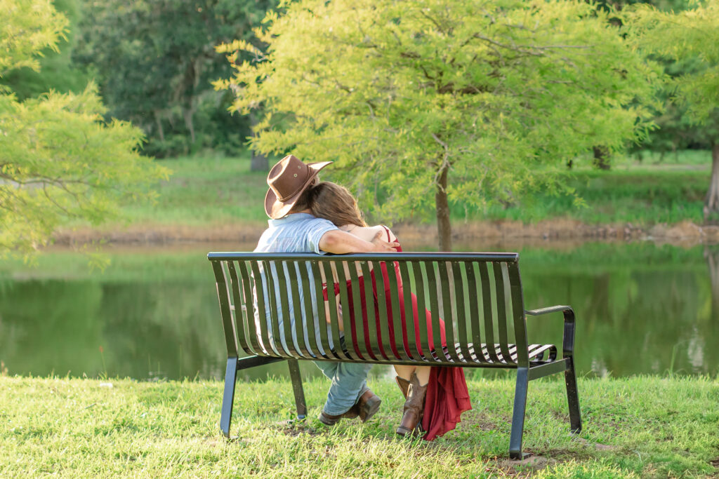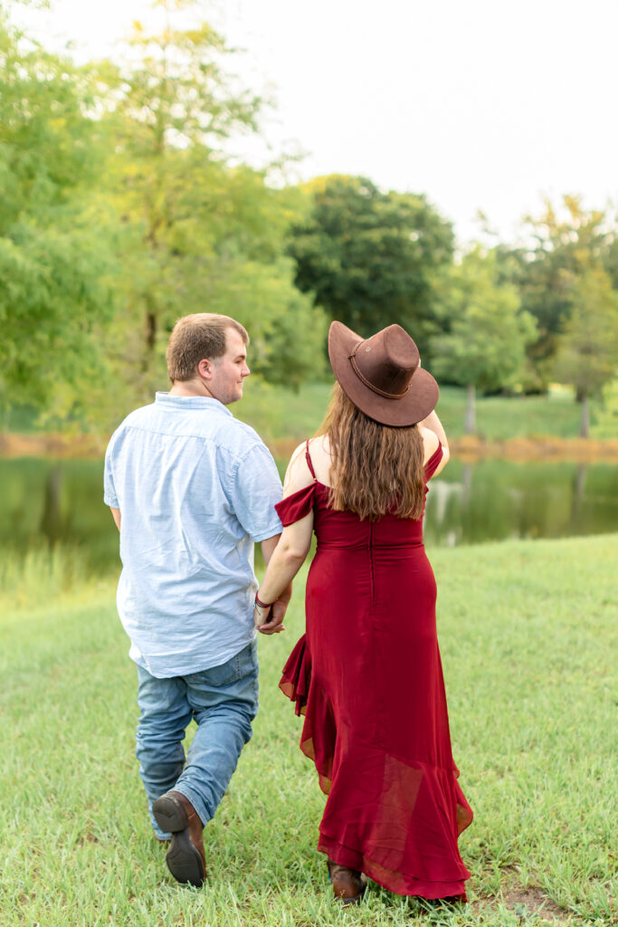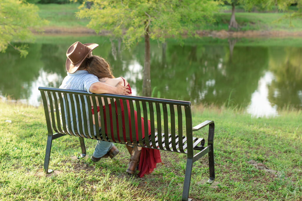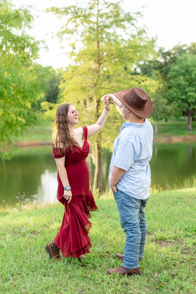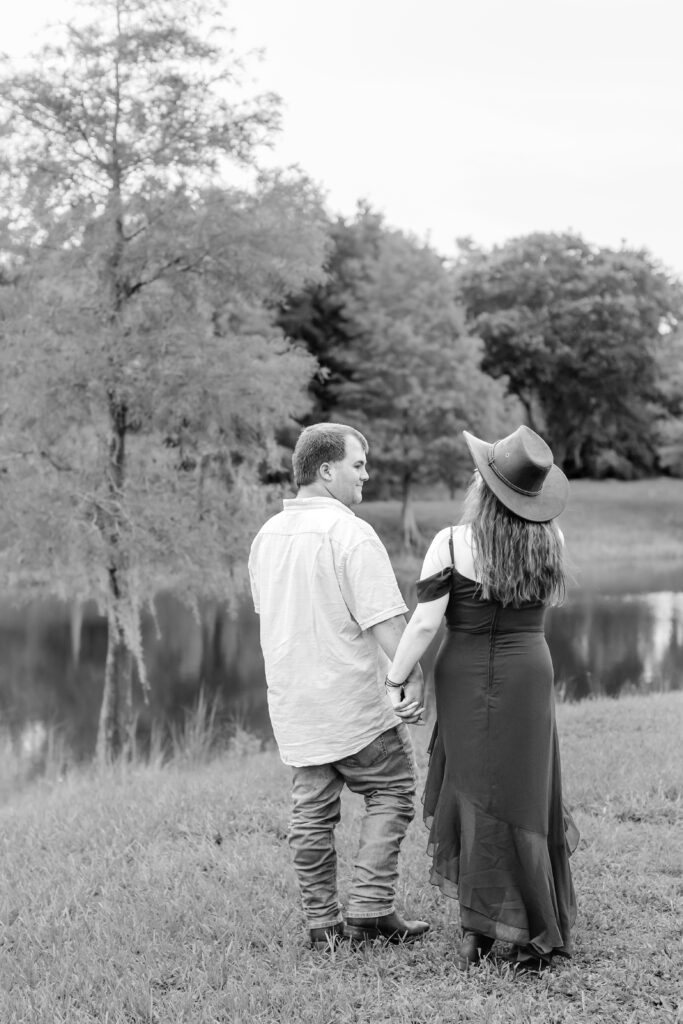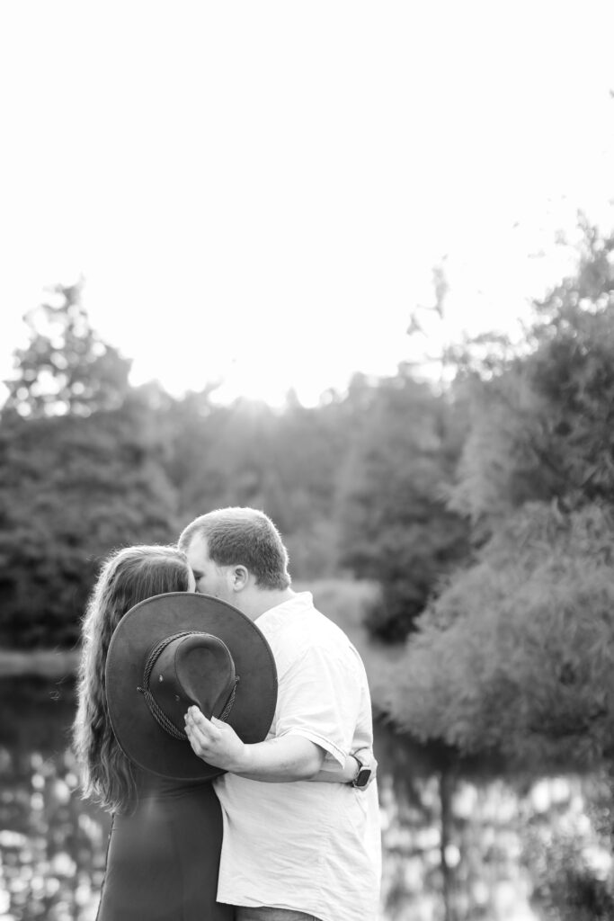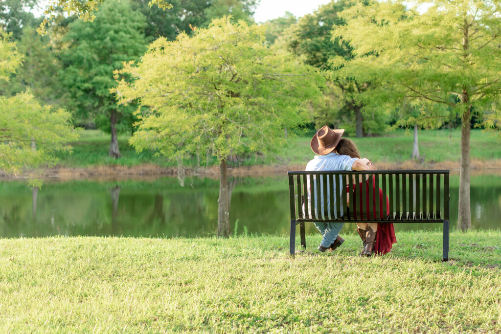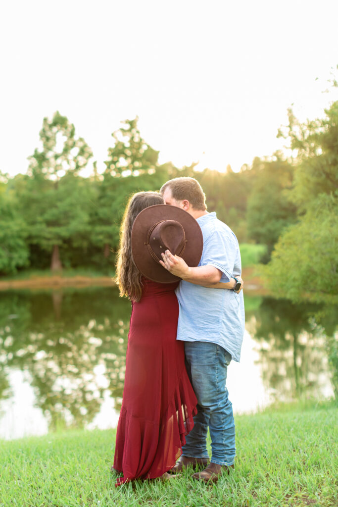 After we wrapped up with the horses, we went to our final spot for the evening… a quiet lakeside spot next to the church where Lance grew up. The sun was starting to set and was casting a golden light through the trees. The scene couldn’t have been more perfect. Taking their engagement photos by the church where Lance grew up was a full-circle moment… celebrating new beginnings in a place that was already filled with so many wonderful memories.