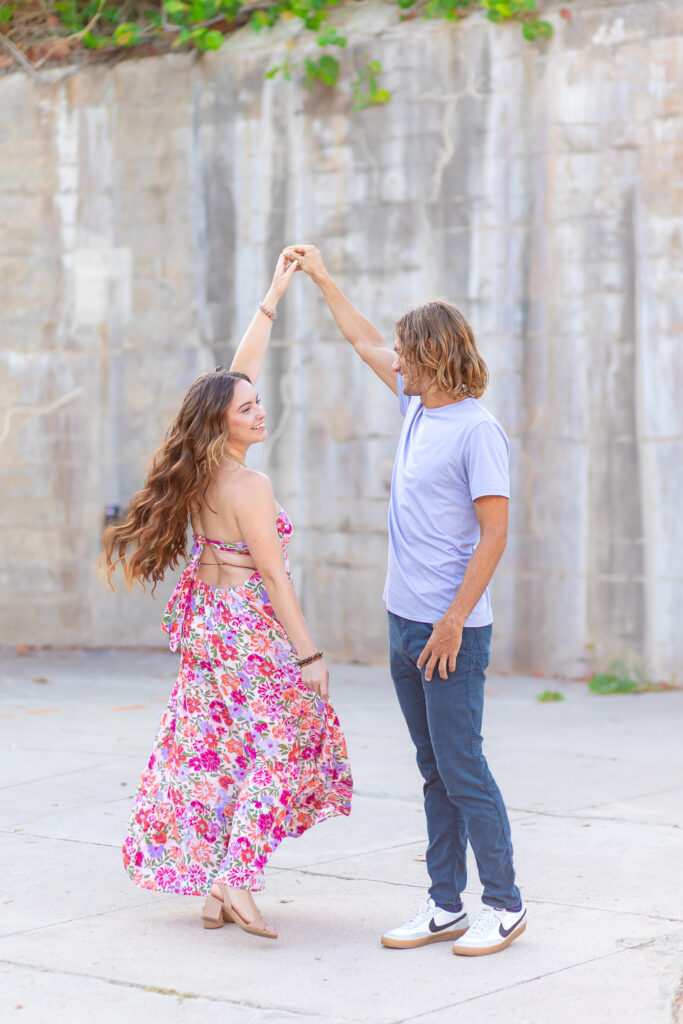 We started at the fort, where Halley’s floral sundress was the perfect contrast against the soft and weathered walls of the fort. The two of them walked, twirled, laughed, and shared the sweetest, private conversations as I photographed them. It was wonderful…. we started off so strong!!! Then it was time for our next location. So, we wandered over to the stairs for a few playful, and “model” shots before making our way down the path to the beach.