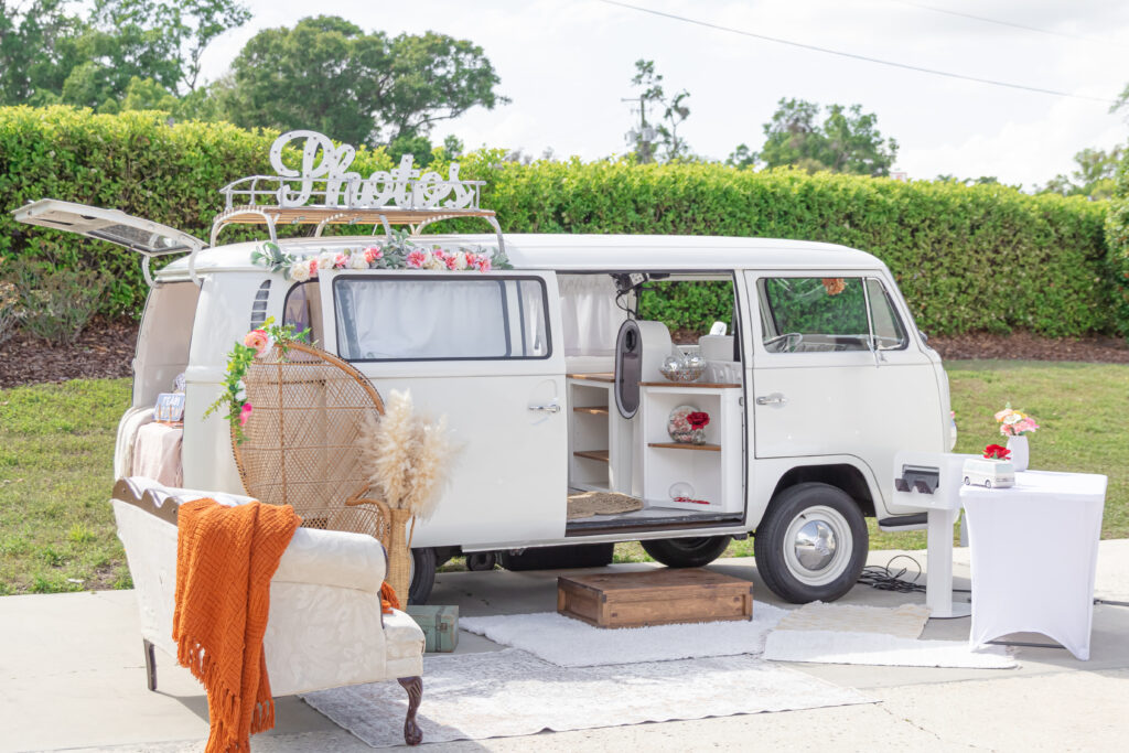 Our Photo booth is not just an ordinary photo booth… and for several reasons. The photo booth actually lives inside of the cutest little 1970 VW Bus. Our bus brings quite the vintage vibe that your guests will fall in love with. Her name is Penny and she has so much to bring to your wedding day.